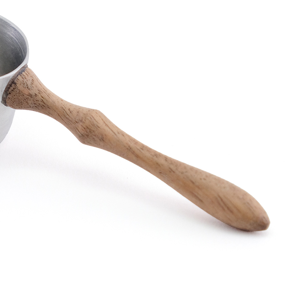 アルミと木の組み合わせで作られた計量スプーンです。豆の状態で10g、挽いた粉の状態で11g計測でき、毎日のコーヒータイムに最適なサイズ設計になっています。持ち手には木製カトラリーと同じデザインをあしらい、アルミキャニスターと合わせて、統一感のあるコーディネートでお使いいただけます。ナチュラルで温かみのあるウッドと、シンプルで丈夫なアルミの組み合わせは、使うたびに手に馴染み、長く愛用できるデザインです。コーヒーの計量だけでなく、シリーズアイテムとのセットでギフトにもおすすめのアイテムです。 アルミニウム(アルミ)は、軽くて丈夫で熱や電気を伝えやすい、製品の加工がしやすく、使い終わった後のリサイクルも容易で優れた特徴を多く持つ金属です。その丈夫な素材から自動車やパソコンなどの部品、航空機の機体などにも使われています。