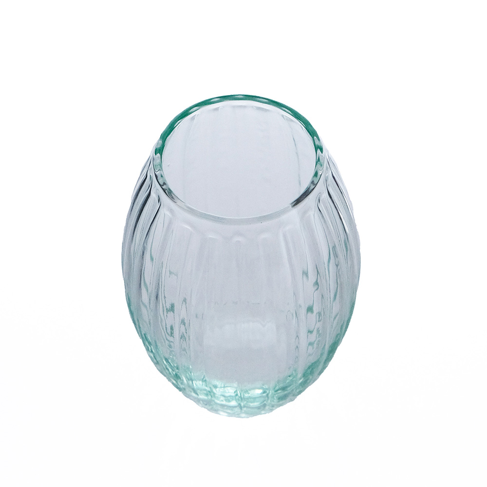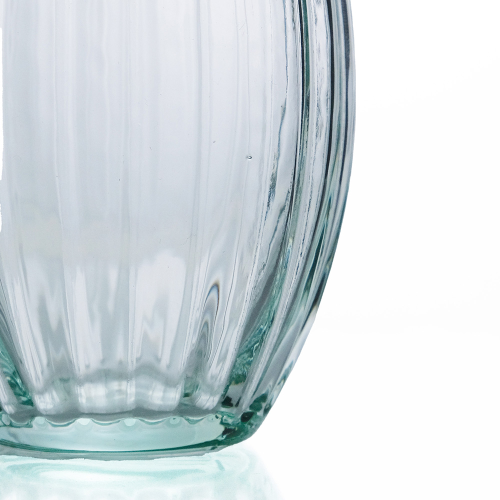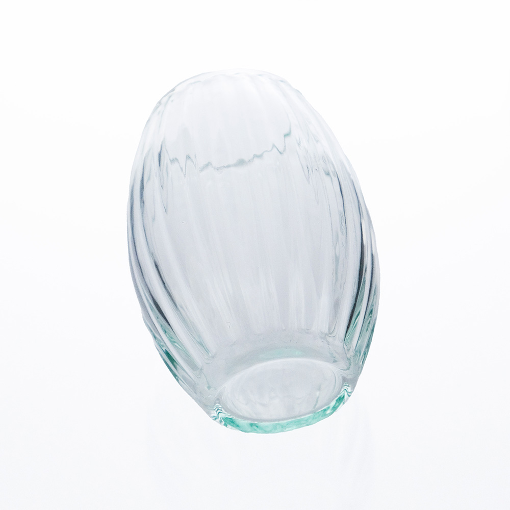 フランス語で名づけたシトロン(レモン)という名前の通り、コロンとした木の実のような形が愛らしいフラワーベース。小ぶりサイズで、カウンターや窓辺にそっと彩りを添えてくれます。 ▼旧品番(ベトナム産)は完売しました リューズガラスとは、再利用されたガラスのことをいいます。一般的には「リサイクルガラス」や「再生ガラス」とも呼ばれ、一度は捨てられたり不要になったガラスをリサイクルして使っています。そのためリューズガラスは、環境にやさしいサスティナブル( Sustainable =持続可能)な社会への取り組みとしても注目されています。リューズガラス製品は、ひとつひとつが職人たちの手によるハンドメイド。炉(ろ)で溶かしたガラスを竿(さお)ですくい取り、型の中で息を吹き込みながら作る「型吹き成形」という技法で作られていますので、たとえ同じ型のシリーズであっても、全く同じ仕上がりになるということはありません。ハンドメイドならではの、ガラス表面に生まれるわずかな“しわ”や小さな気泡、繊細な表情の違いなどをお楽しみいただけると思います。さらにリューズガラスの風合いは、無機質な印象になりがちなガラス製品に独特のあたたかみや素朴さをもたらしてくれます。吹きガラスならではの、やや薄くて軽い作りも魅力のひとつです。ガラスの流れや小さな気泡、口の部分に盛り上がった箇所などがあったりしますが、これは吹き竿からガラスをカットした後、熱処理した時にガラスが流れて出来るもので、これもまた吹きガラスの特徴です。 *リューズガラスは再生ガラスを使用した当社商標登録商品です。 >>インテリアグリーン・ガーデン