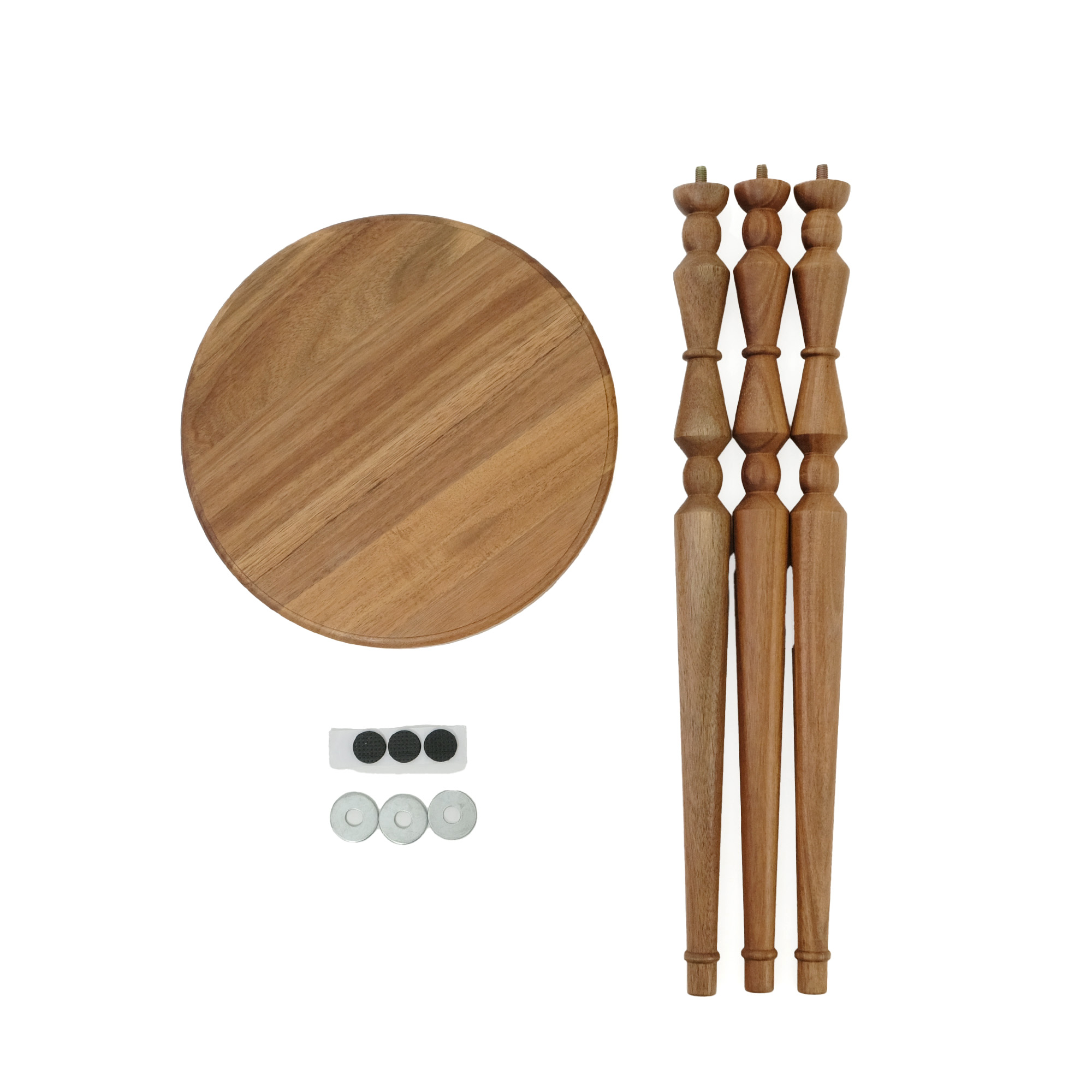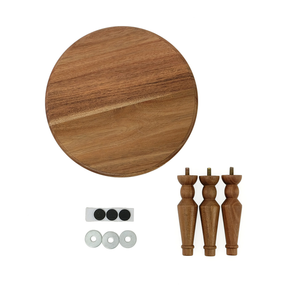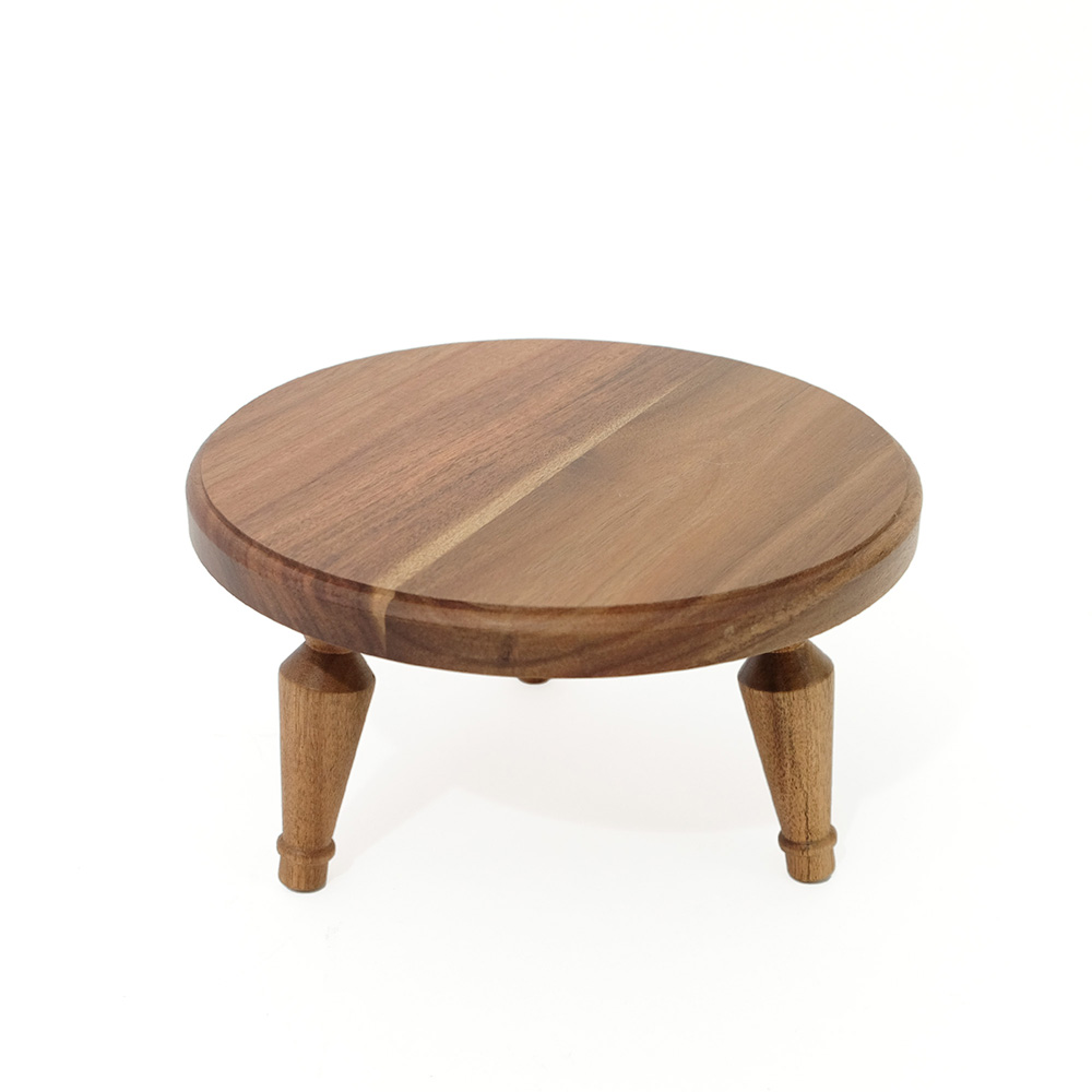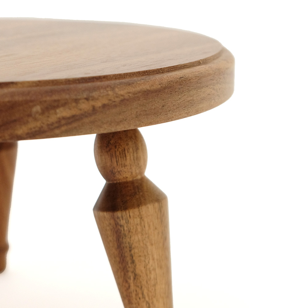 暮らしの中に、軽やかに取り入れられるミニテーブル。コンパクトに収納できる組み立て式で、使わないときは壁際などの隙間に差し込んで収納できます。 天板にはさりげないラインを施し、脚部は無垢材を旋盤で丁寧に削り出した立体的な装飾に。アンティーク家具のようなやわらかな表情を持たせながらも、今の住まいになじむバランスを大切にしました。組み立て式でありながら、簡易的に見えない佇まいを意識しています。 サイドテーブルとしてお使いして頂きやすい、ソファ横にちょうどよい高さに設計。小ぶりなサイズ感なので、玄関やお部屋のコーナーで花台としても楽しめます。 組み立ては脚をねじ込むだけのシンプルな仕様。工具を使わず、どなたでも簡単に取り付け・取り外しが可能です。床用フェルトも付属し、安心してお使いいただけます。 洗練された佇まいと装飾が空間に表情を添える、使い勝手と美しさを兼ね備えた一台です。 ACACIA WOODは中心部が濃い茶色で周辺部は白色と、濃淡の差がはっきりとしています。これらを木材そのものの特徴として捉え、原材料を無駄なく使い、限りある資源を大切にしたいと考えています。また、手作りのため商品のサイズや形状にも多少の誤差があります。素材そのものが持つ個体差や、大量生産にはないそれぞれの表情をお楽しみください。 >>家具