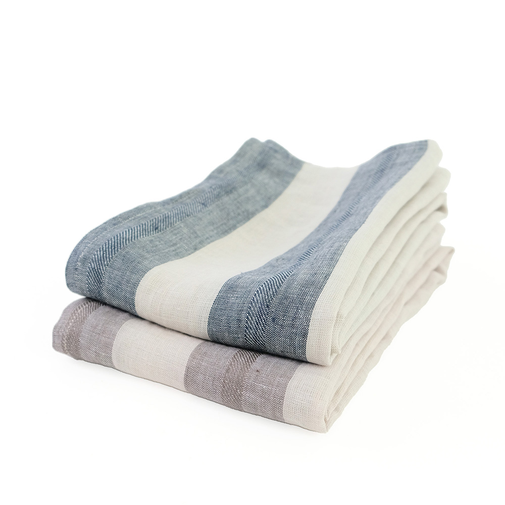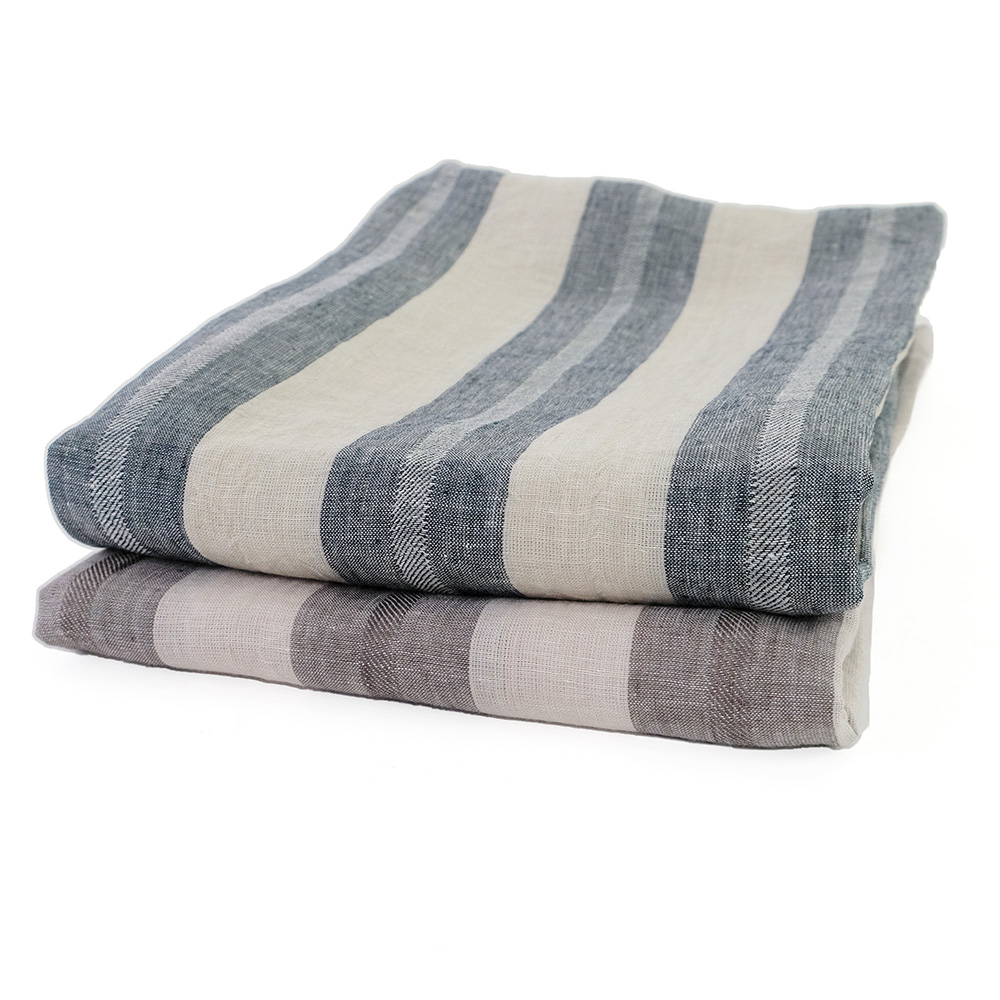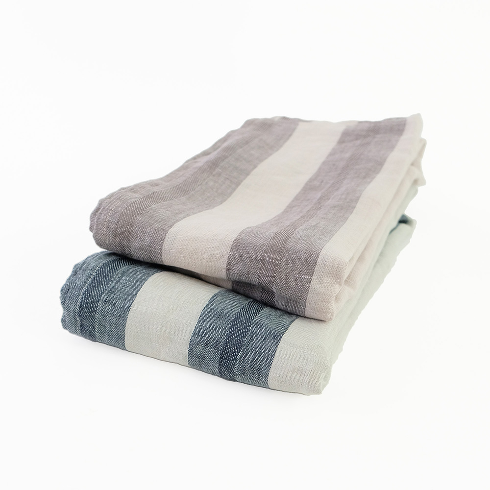 使い込むほどに風合いを増すリネンをシックで飽きのこないストライプ柄にデザインしました。