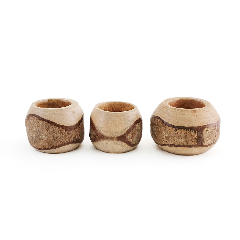 天然の木を削りだし、あえて木の皮の風合いを残したデザインです。